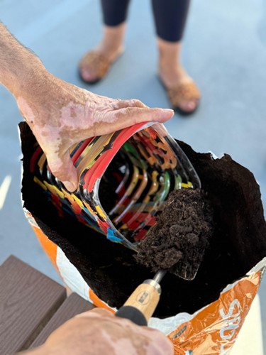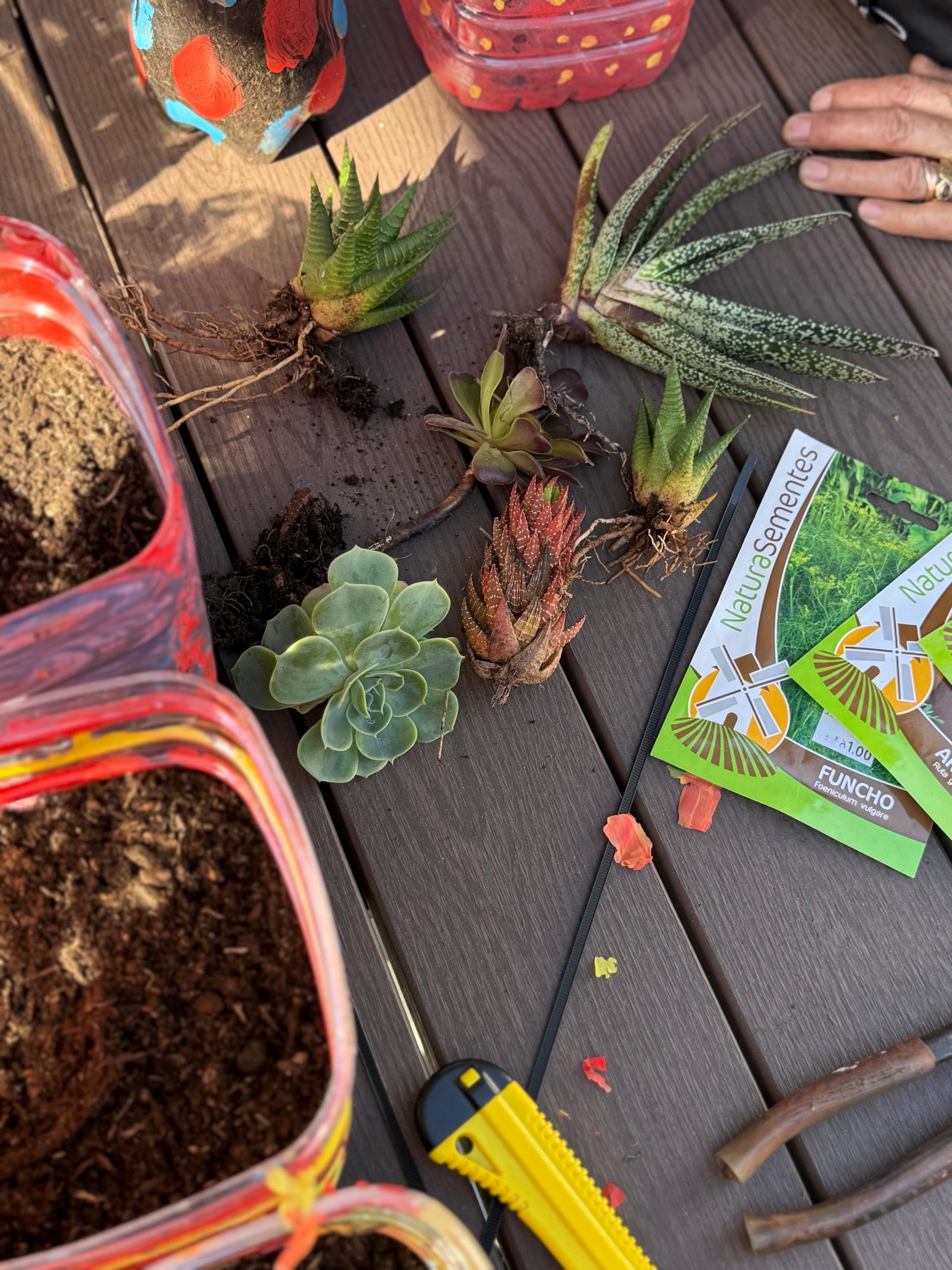 Durante a atividade, crianças e idosos pintaram e decoraram os vasos, feitos com materiais reciclados, plantaram juntos as primeiras sementes, dando início a um projeto comum que pretende cultivar não só produtos da terra, mas também valores de cooperação, respeito e sustentabilidade.