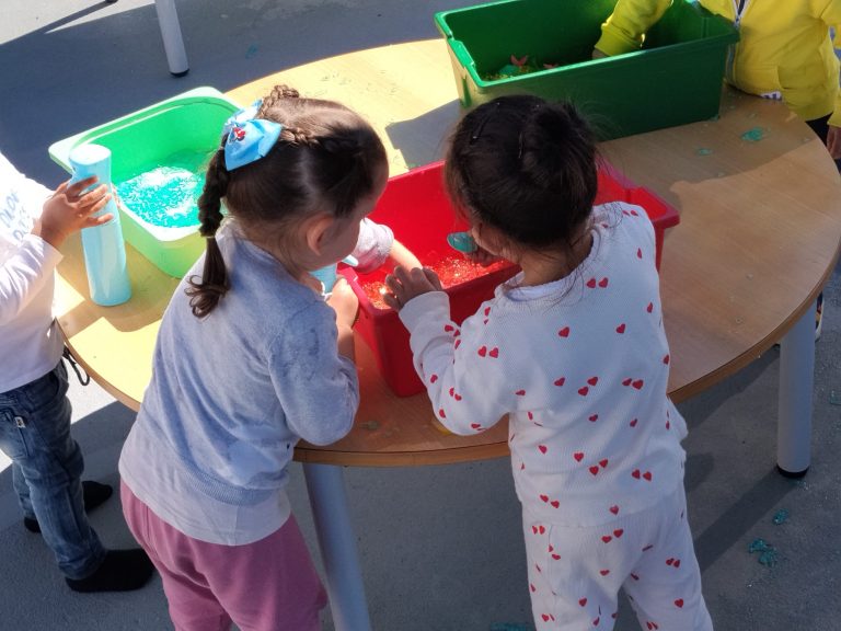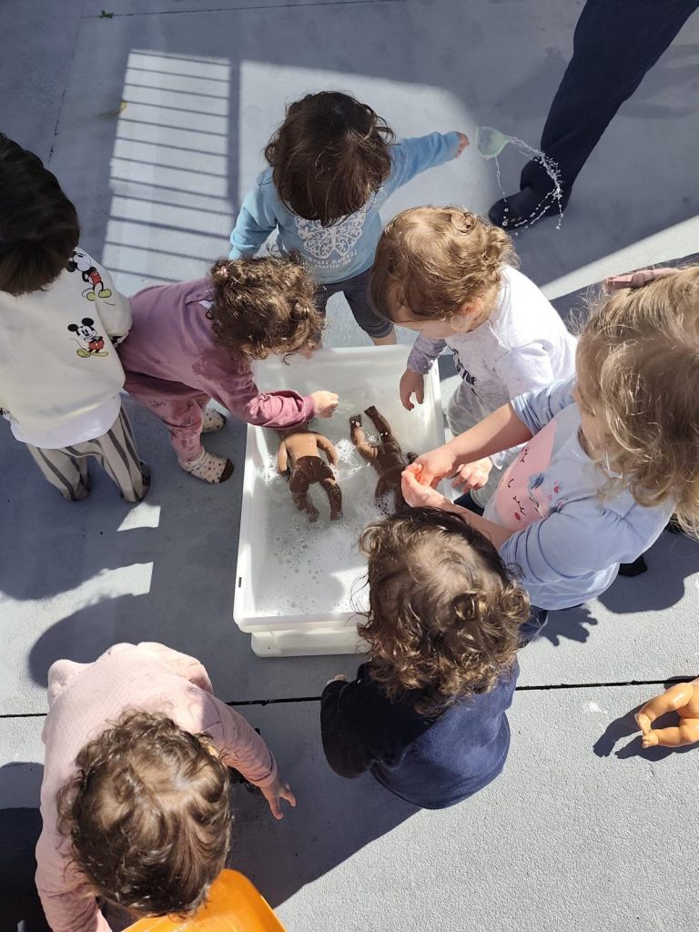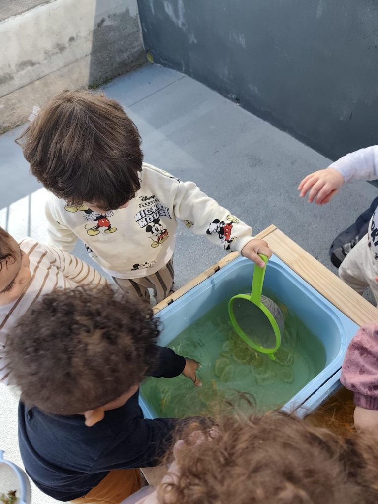 Ao longo da manhã, as crianças participaram em diversas atividades sensoriais cuidadosamente preparadas pela equipa educativa. A água foi uma das grandes protagonistas, permitindo brincadeiras livres e exploratórias que despertaram a curiosidade e promoveram a coordenação motora. Entre salpicos e risadas, os mais pequenos puderam experimentar diferentes temperaturas e movimentos, estimulando os sentidos de forma natural e divertida.